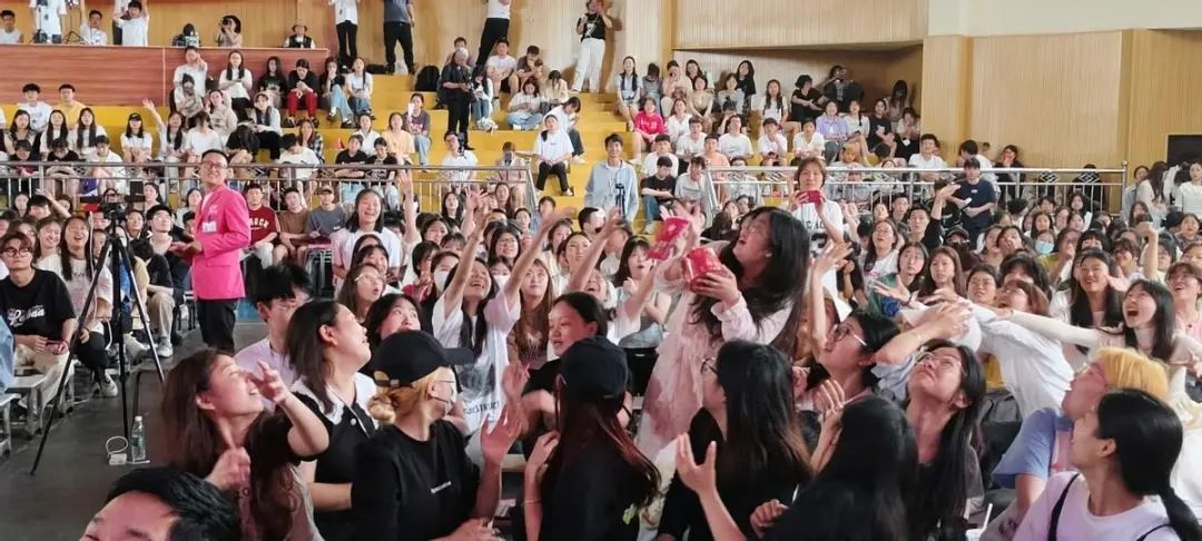 (方便粉絲方便米粉發(fā)明人鄒光友高校巡回演講現場(chǎng)共跳粉絲舞)