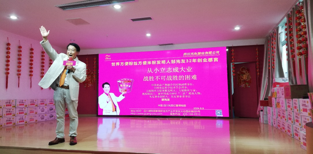 活動(dòng)前預熱環(huán)節,一段活力四射的光友粉絲舞視頻讓現場(chǎng)氣氛瞬間升溫。隨后,方便粉絲方便米粉發(fā)明人、光友薯業(yè)集團董事長(cháng)鄒光友發(fā)表熱情洋溢的歡迎辭,并深情分享《從小立志成大業(yè) 戰勝不可戰勝的困難》的感言,鼓勵小記者們勇于面對挑戰面對困難,追求夢(mèng)想。在互動(dòng)環(huán)節,小記者們積極提問(wèn),鄒董事長(cháng)一一耐心解答,并親手為提問(wèn)的小記者們贈送《光友詩(shī)選》,每本書(shū)上都附有鄒董事長(cháng)親筆簽名及溫馨寄語(yǔ),傳遞著(zhù)對下一代的殷切期望。