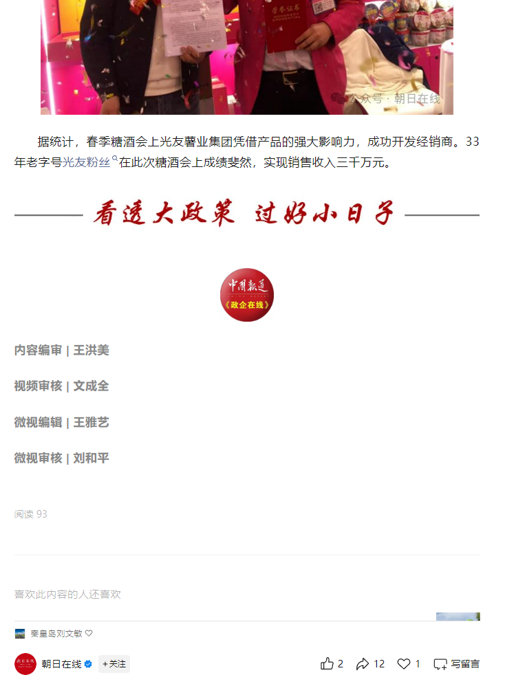 轉載朝日在線(xiàn)——光友粉絲香萬(wàn)里 糖酒會(huì )上創(chuàng )佳績(jì)