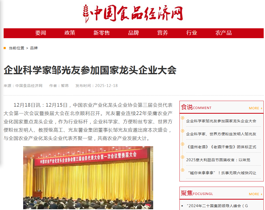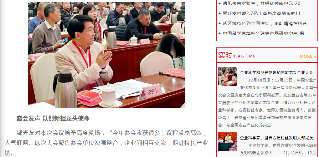 轉載中國食品經(jīng)濟網(wǎng)-企業(yè)科學(xué)家鄒光友參加國家龍頭企業(yè)大會(huì )